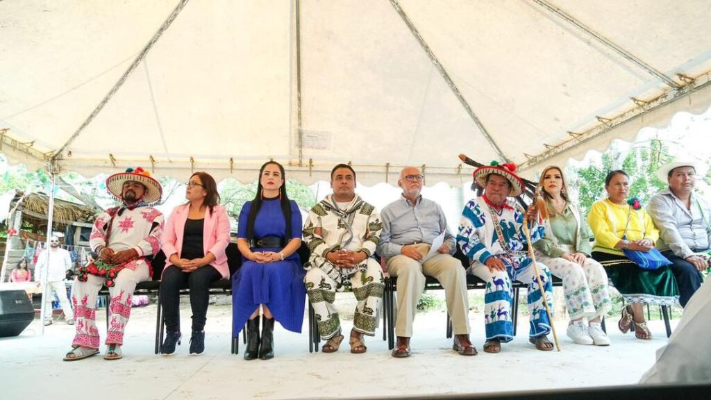 El mandatario nayarita fue acompañado por la secretaria general de Gobierno, Rocío Esther González García y las presidentas del Congreso del Estado, Alba Cristal Espinoza Peña y del Poder Judicial, Norma Alicia Haro Cruz respectivamente, además de gobernadores tradicionales e integrantes de los pueblos originarios.